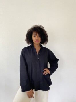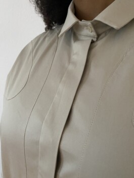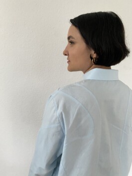 Katharina explains the process of creation as follows: “For ‘Out of the Blue’, our idea was to create something together and merge the styles of both art forms. This sparked a lively exchange between intros, fabrics, rhythms, fits, basslines, and details. The result is a garment that plays with clarity and line design, incorporating the sounds of Olicia into its design. We wanted it to be a timeless, durable, and versatile garment that is the perfect choice for any occasion - the classic shirt. An essential piece in every wardrobe.”