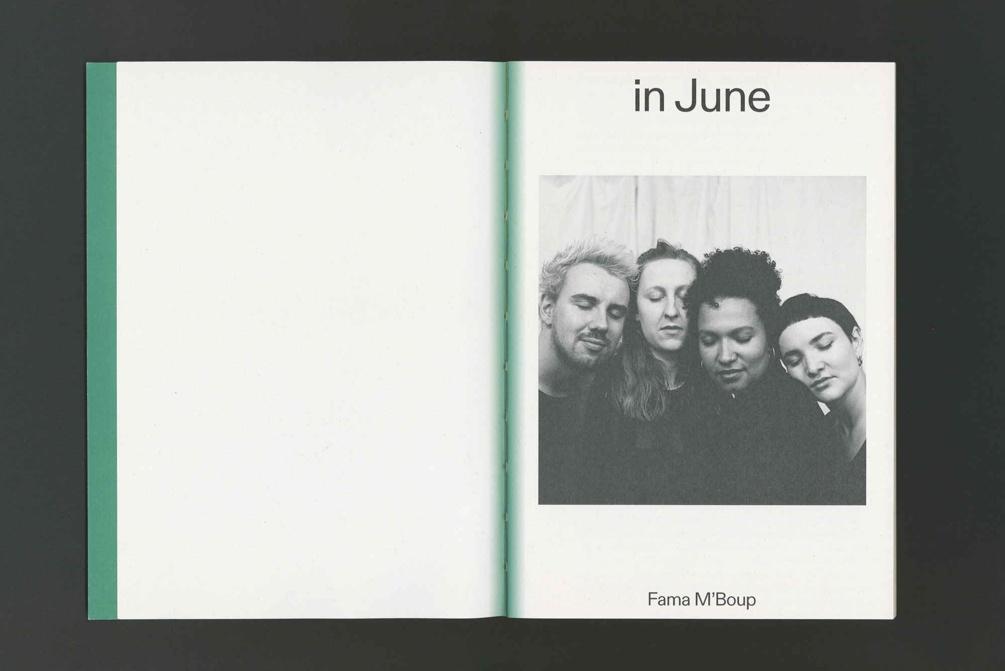 in June is rooted in Jazz, melancholic folk songs, and classical art songs. The result of this synthesis, however, is far from what you’d expect it to be. From these elements, Fama M’Boup develops her very own language of a cappella music for four voices, now and then applying synthesizers or drums to finish it. in June finds expression through vocal music that has little to do with the things we think we know about this somewhat dusty genre. Neoclassical meets electronic music, spoken word meets Rilke and brutal honesty. You can also recognize