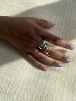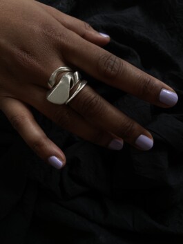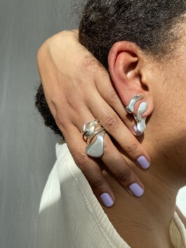 Malene Glintborg describes her process as follows: “From the concept of sound waves came the idea of sculpting something fluent and moving yet controlled. The wax I initially work in, has the soft running character, but when cast in silver it hardens - almost like an armor or shield. The merge between body and art piece has always been a scope in my design. Olicía capture this in the lyrics. Like an armor the jewelry has to fit the anatomy of the body.”